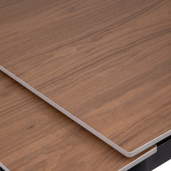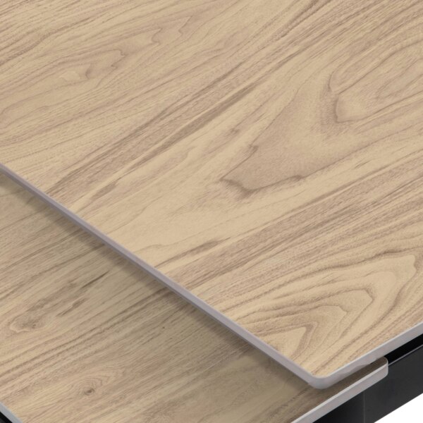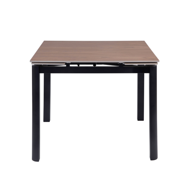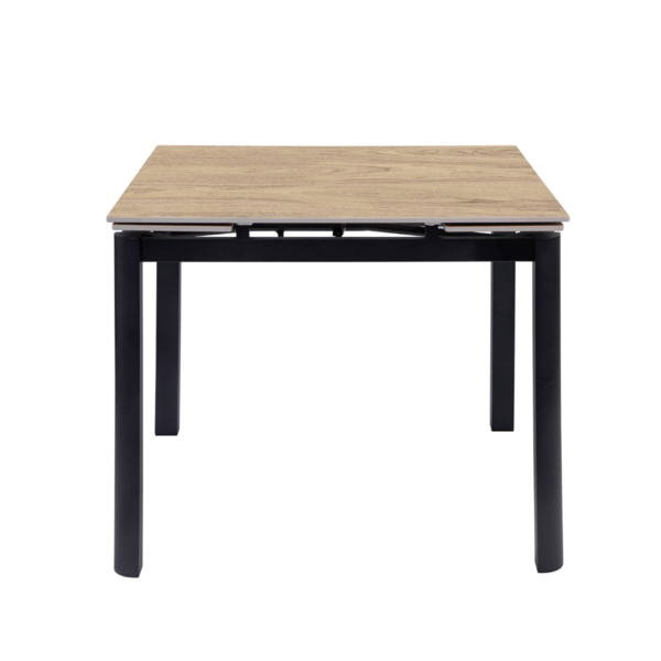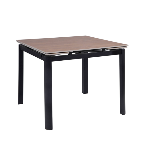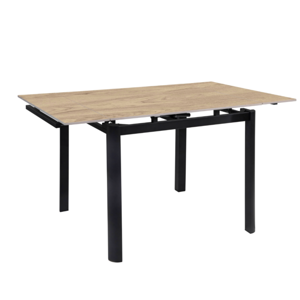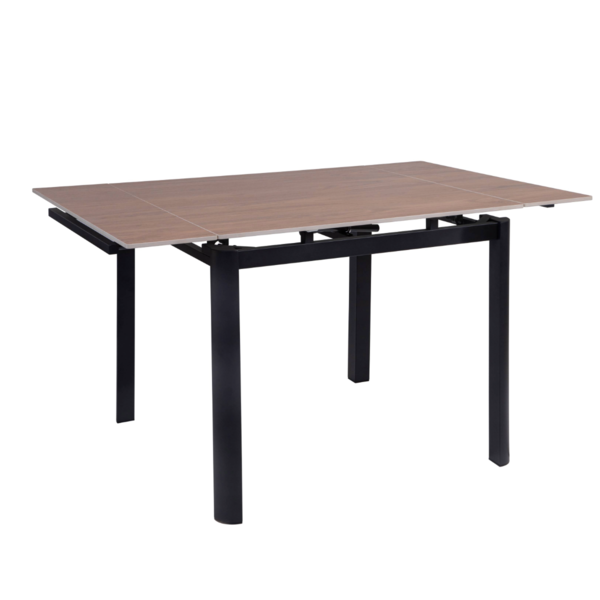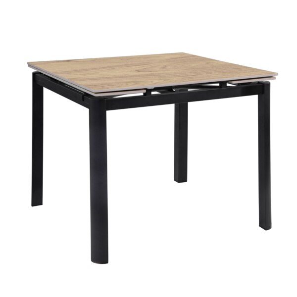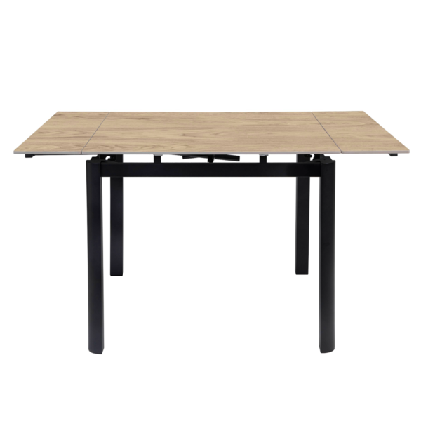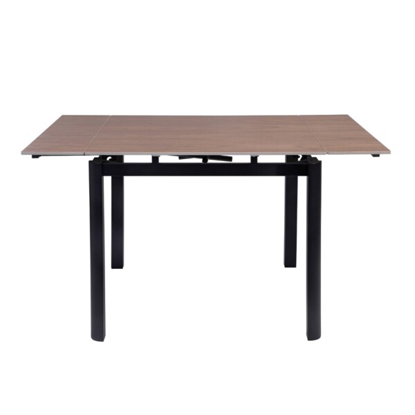 Elevate your space with this versatile and modern table, perfectly suited for cozy areas like condos, apartments, or breakfast nooks. It's clean-lined black frame pairs beautifully with the warm wood-look stone top, creating a contemporary piece that's both stylish and functional. Featuring 9-inch leaves on each side, it offers effortless expansion with a simple pull-and-lift mechanism, giving you the flexibility to adapt to changing needs.