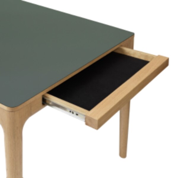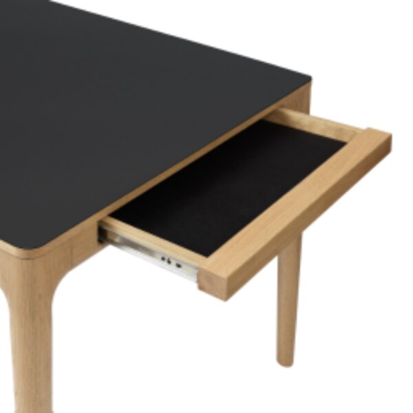 The Heart’n’Soul dining table seamlessly blends form and function with its slim, airy silhouette and practical features. Designed for modern living, it includes two fabric-inlaid drawers at each end—ideal for quickly tidying away everyday clutter. These drawers also serve as holders for the extension plates, which are stored discreetly under the table and can be added or removed with ease to accommodate more guests.
