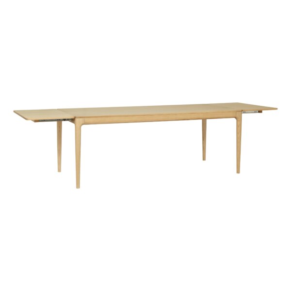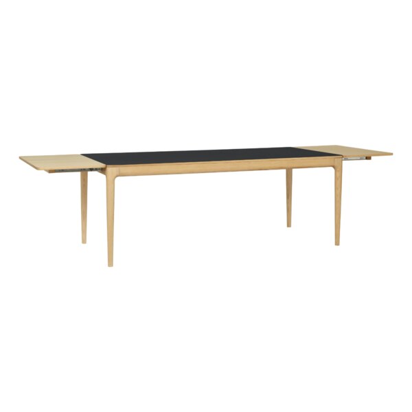 Available in two sizes, the smaller version suits compact spaces and intimate gatherings, while the larger version can seat up to 12, perfect for spacious dining rooms. Both are extendable and come in oak, dark oak, or black oak, with select versions available in FENIX® nanolaminate finishes. Known for its durability and sleek appearance, the nanolaminate surface resists scratches and stains, adding a modern, lasting touch to any home.