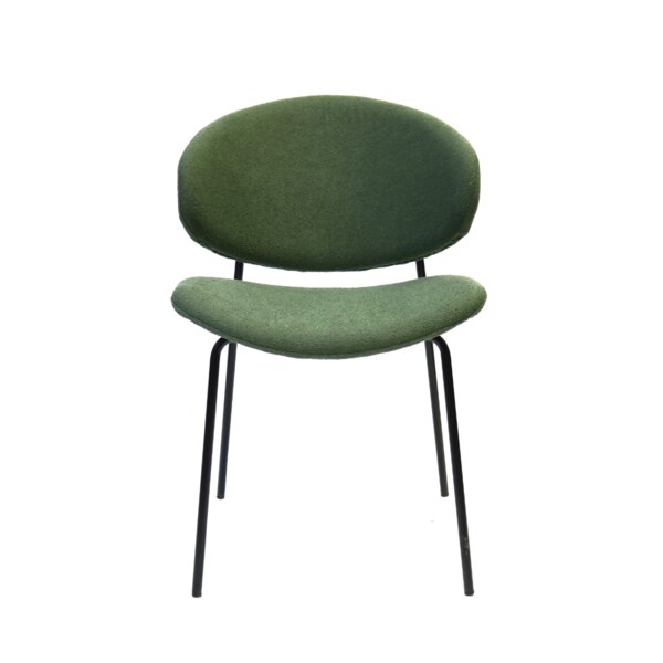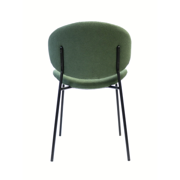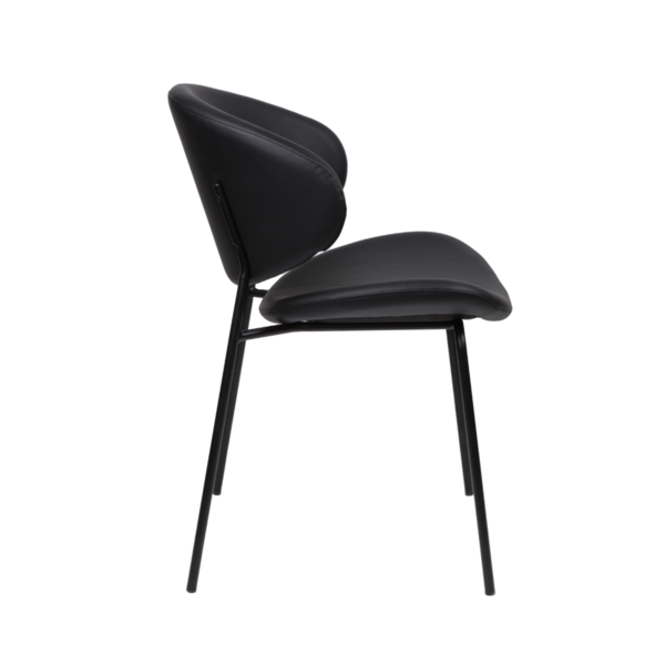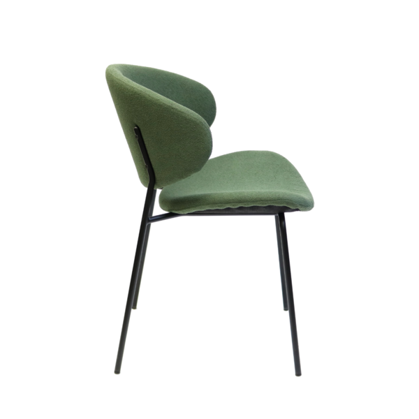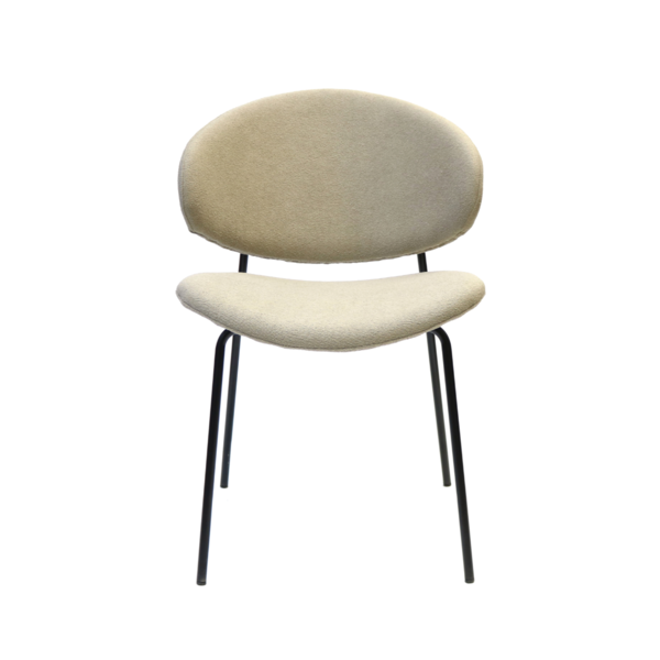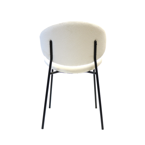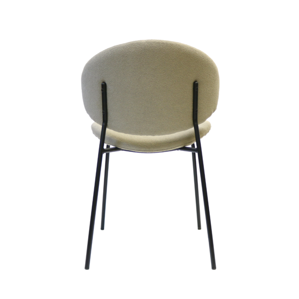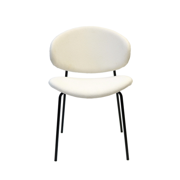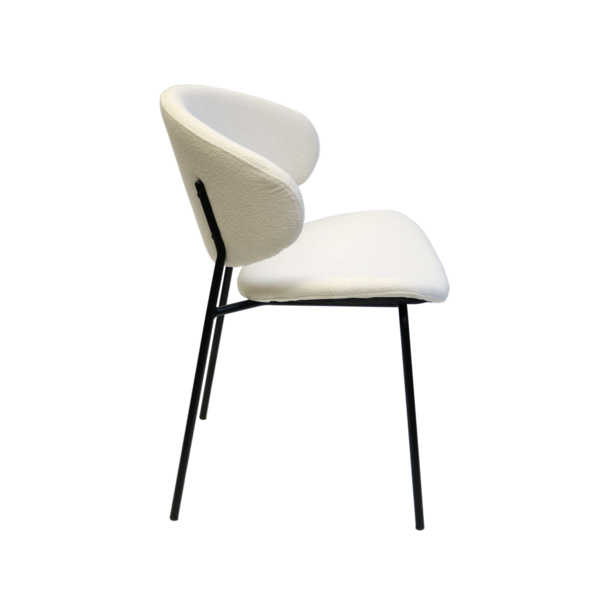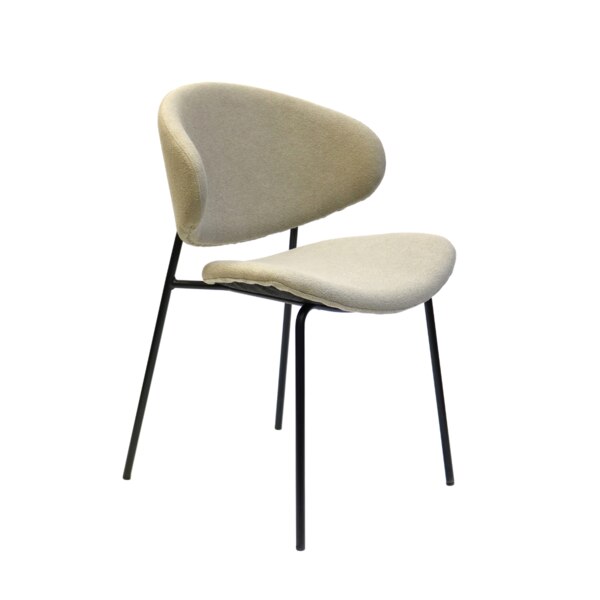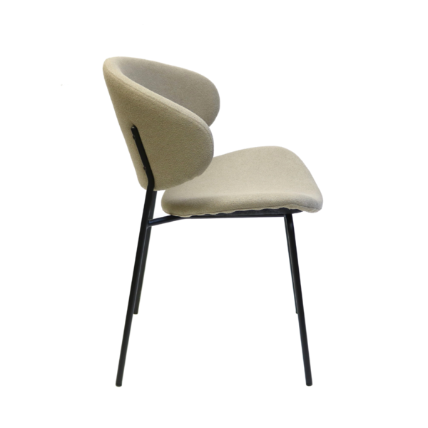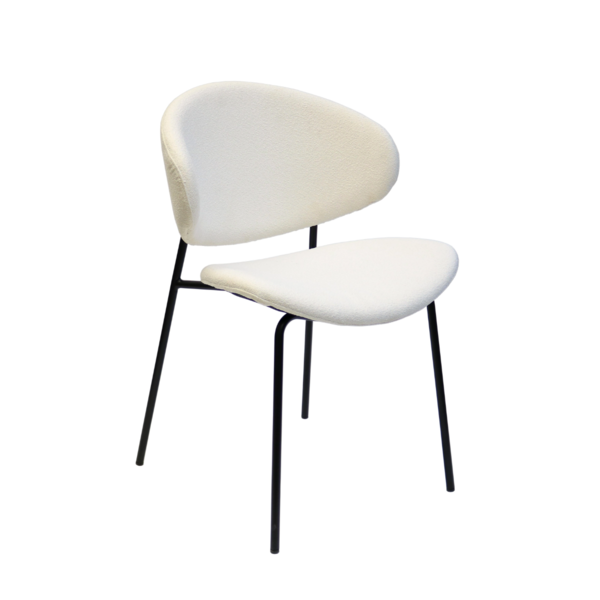 Light, modern and effortlessly stylish, this chair brings a soft contemporary touch to any space. It's sculpted backrest and gently contoured seat offer inviting comfort, while the plush, textured upholstery add adds warmth and tactile appeal. Slim black metal legs provide a clean, minimalist contrast, giving the chair a refined profile that works beautifully in dining rooms, workspaces, or as a chic accent piece. A perfect blend of comfort and modern design.