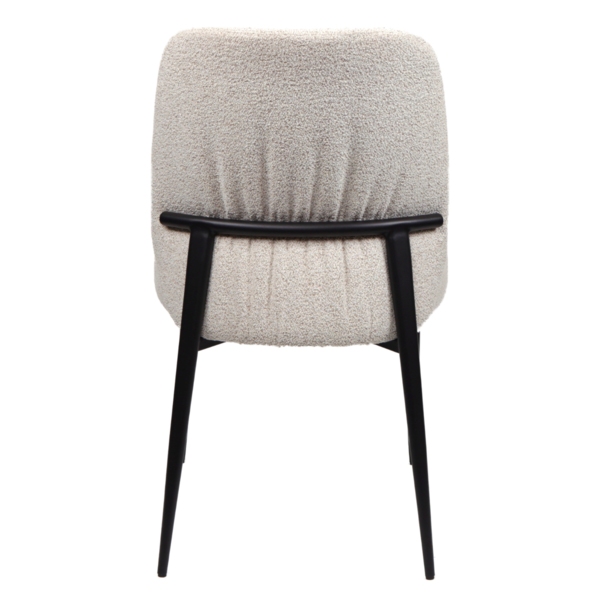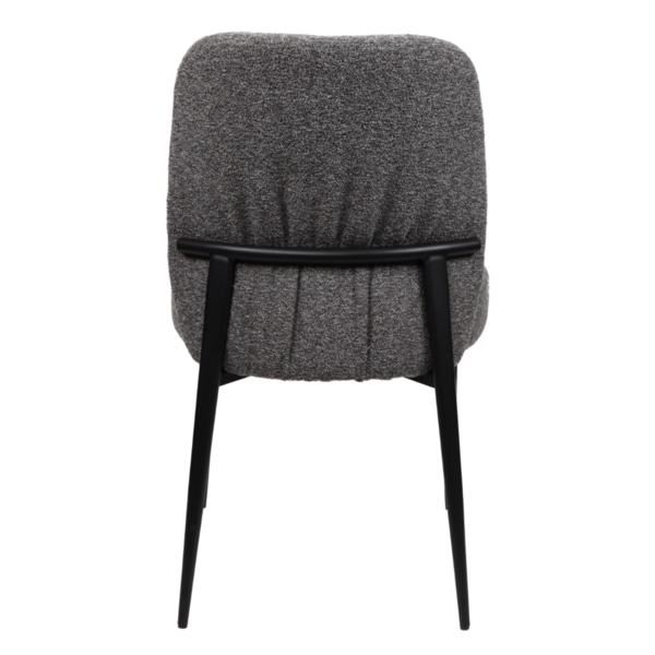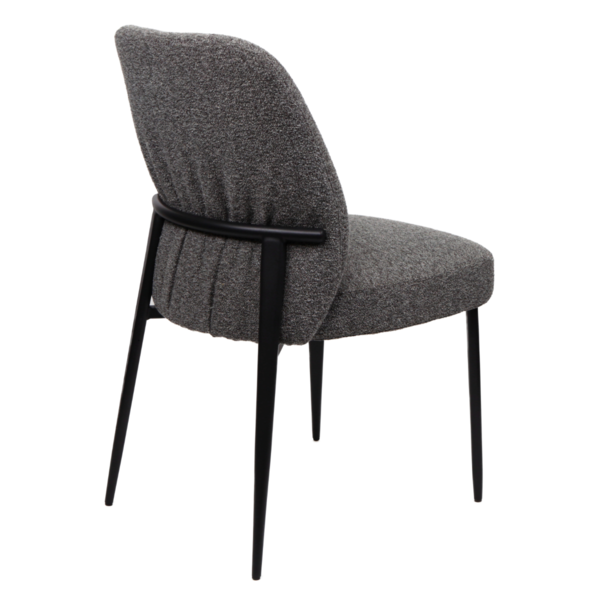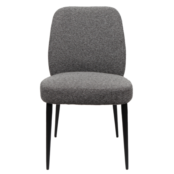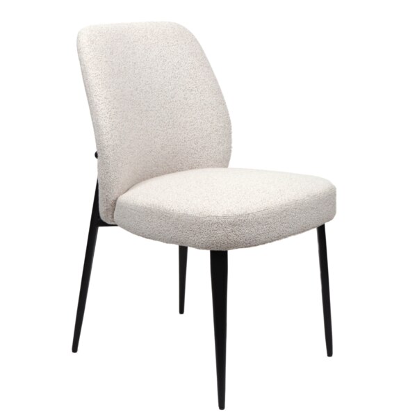 This chair offers a refined blend of comfort and contemporary style. It's gently angled backrest and plush rounded seat are wrapped in a soft, textured upholstery that brings warmth and elegance to any space. Sleek black tapered legs add a modern edge while ensuring stability. Versatile and inviting, this piece works beautifully as a dining chair, accent seat or a stylish addition to a workspace.